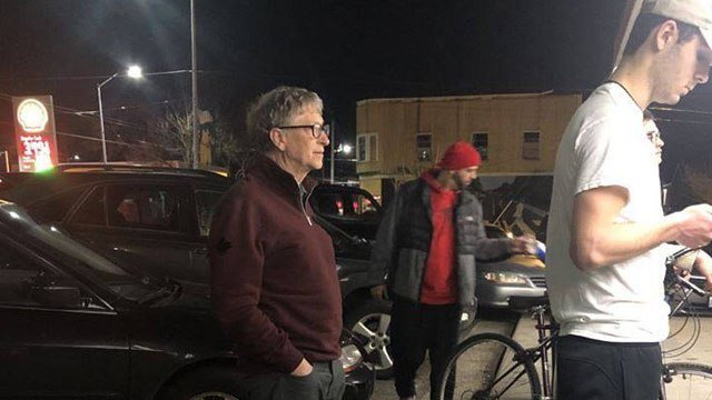 Америкалык Майкл Галос, Facebook'дагы баракчасына дүйнөдөгү байлардын катарын толуктаган Билл Гейтсти Dick’s ресторанында кезекте турган сүрөтүн чыгарган.