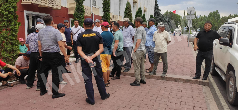 Митингге 30га жакын дыйкан катышты. Алардын жанында укук коргоо органдарынын кызматкерлери турат.