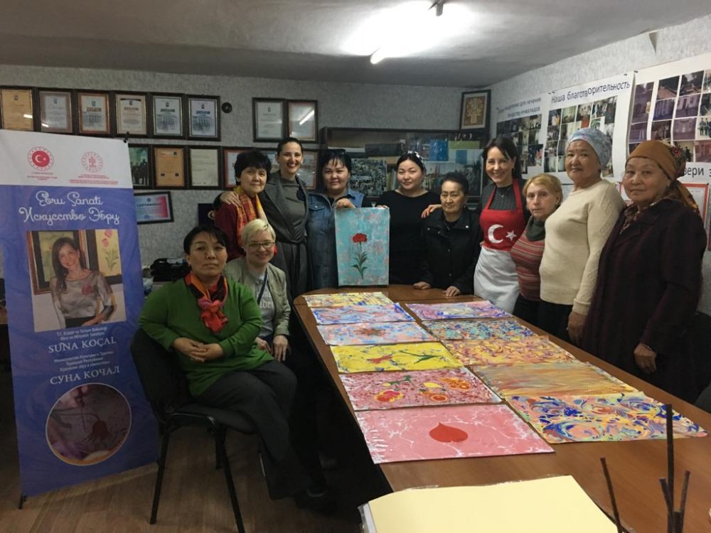 Үстүбүздөгү жылдын 24-апрелинде Түркия Республикасынын Кыргыз Республикасындагы Элчилигин колдоосу менен Майып аялдардын республикалык көз карандысыз ассоциациясында Түркиядан Кыргызстанга Эбру сүрөт искусствосун таанытуу максатында келген Эбру жана миниатюра искусствосунун мастери Суна Кочалдын мастер классы көрсөтүлдү. Бул тууралуу маалыматты Түркиянын Кыргызстандагы Элчилигинин Басма сөз кеңешчилиги билдирди.