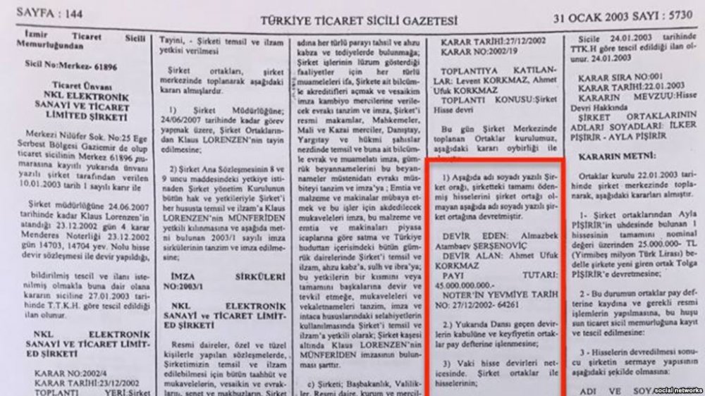 Былтыр 5-апрелде президенттик сайтка ошол кездеги мамлекет башчы Алмазбек Атамбаев башкы прокурор Индира Жолдубаеваны кабыл алган. Анда ал башкы прокурурорго 2003-жылы январда Түркиянын Измир шаарындагы өнөр жай ишканасындагы өзүнө таандык акциялар пакетин түркиялык ишкерге ошол кездеги 45 млрд. түрк лирасына, же ошол кездеги курс менен 35 млн. долларга сатканын күбөлөндүргөн документтерди бергени кабарланган.
