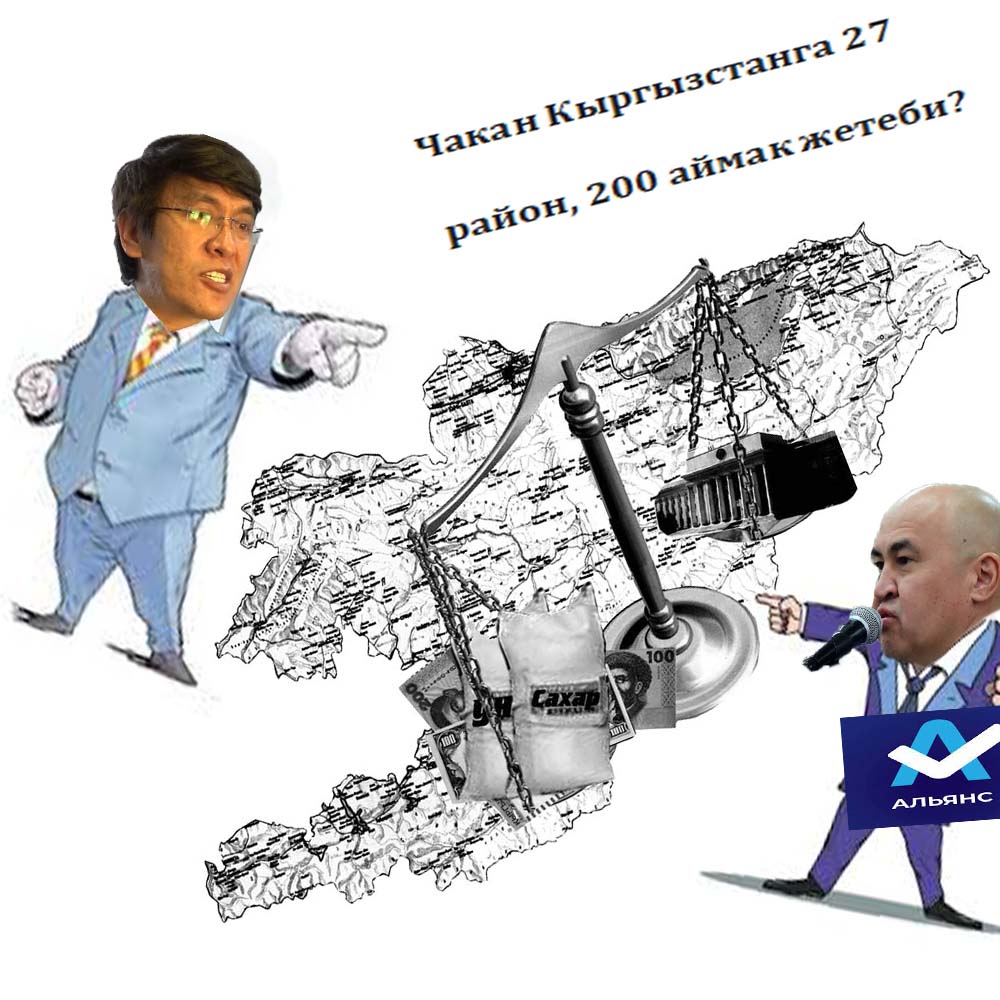 Ага караганда 2015-жылы “Бир бол” фракциясын түзүп, бүгүн анын ашмалтайын чыгарып “Альянска” өткөн Алтынбек Сулайманов: "Аймактарды өнүктүрүү деген жыл жарыяланып, сөз боюнча калып кетти. Менин оюмча айыл өкмөттүн башчыларына мүмкүнчүлүк бериш керек. Өкмөттүн облустардагы өкүлдөрү деген кызматты жоюш керек. Анын эмне кереги бар?