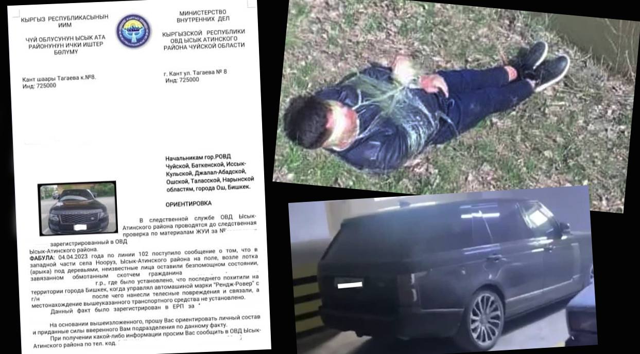 3-апрелде Н.Б. аттуу жаран “Риом” автобазарына “Рендж Ровер” үлгүсүндөгү машинасын сатканы барат. Ал жерден өзүн “Жолдошбек” деп тааныштырган адам пайда болуп, “Рендж Роверди” айланчыктап, атасына сатып берерин айтып алдап, эртеси 4-апрелде жолгугушууну айтат. Эртеси Анкара-Достоевский көчөлөрүнүн кесилишинен 19.00 чамасында кезигишип, анан аны талаага алып барып сабап, таңып башка машинага жүктөп, Рендж Ровер машинасын айдап кетишкен.