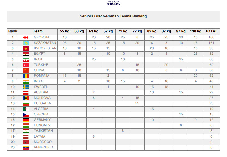 Командалык эсепте Кыргызстандын грек–рим күрөшү боюнча курама командасы 3-орунду ээледи.