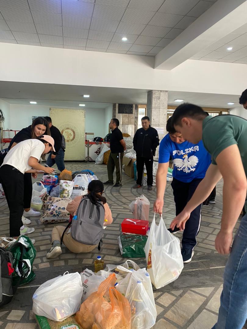 Ошол эле күнү алардын артынан 2 жүк ташуучу унаа, борбор калаанын тургундарынан 40 тонна гуманитардык жардам кеткен.