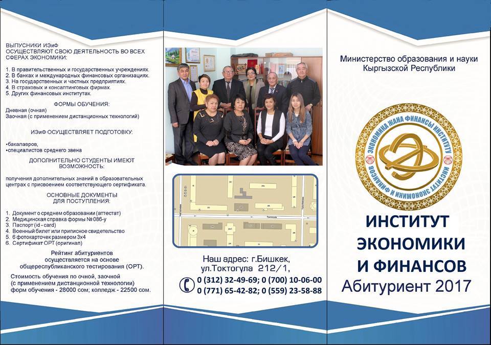 Экономика жана финансы институту ата-энеси жок, аз камсыз болгон уй-булөлөрдүн балдарына жардам көрсөтөт. Институттун чет өлкөлүк өнөктөшү 10 балага аталган окуу жайда акысыз билим алууга жардам берет. Эгер томолой жетим калып, же балаңызды жогорку окуу жайларда окутууга шартыңыз жок болсо, Экономика жана финансы институтуна кайрылыңыздар. Ал учун бутуруучу жалпы республикалык тестирлоодо 110 баллдан кем болбошу керек. Институтта түзүлгөн атайы комиссия аныктап, текшерген соң балдар акысыз билим алууга мүмкүнчүлүк алышат. Даргеи: Бишкек ш., Токтогул 212/1, Тоголок Молдо 60. Телефондор: 0700 100-600; 0312 32 49 69