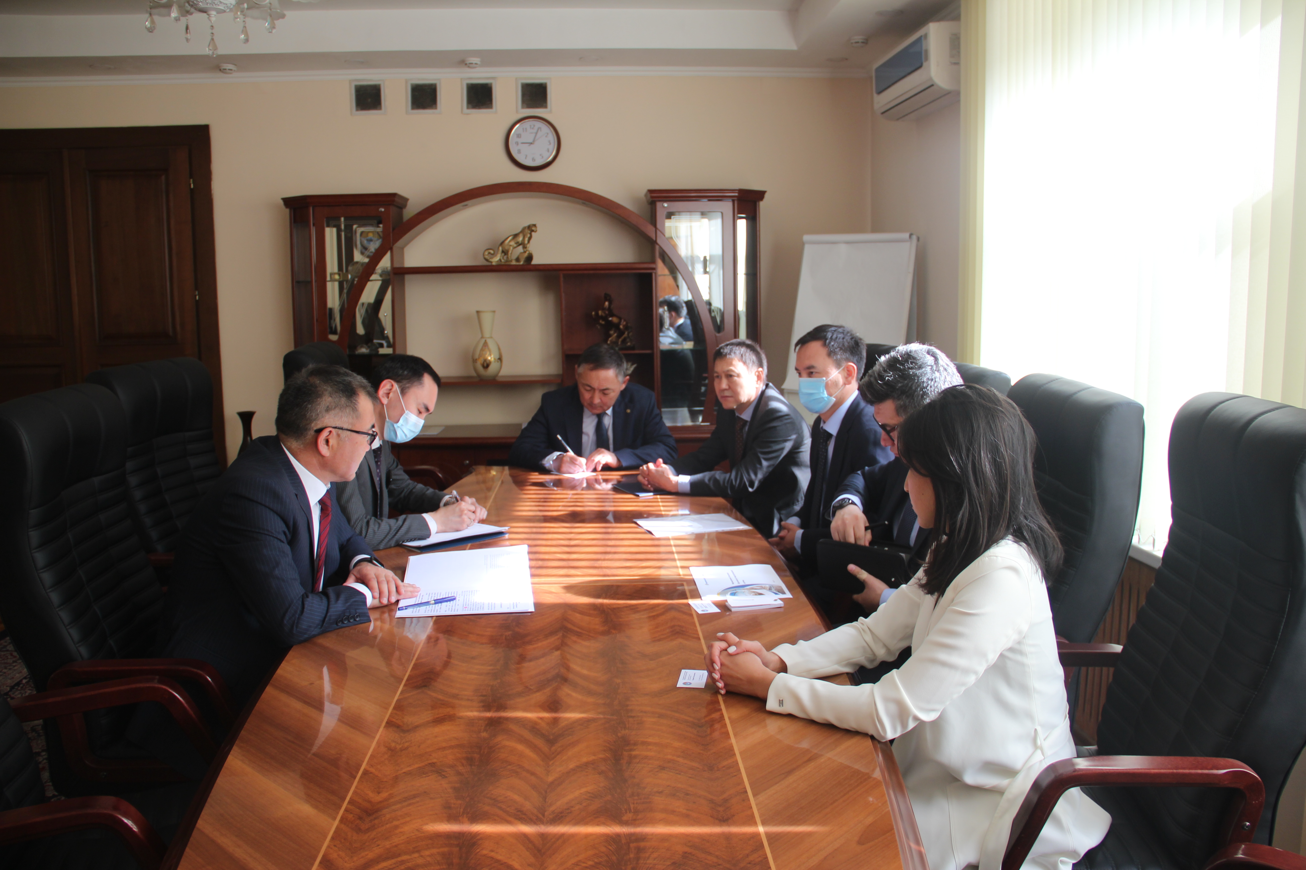 Бүгүн, 14-майда КР министрлер кабинетинин төрагасынын орун басары - экономика жана финансы министри Улукбек Кармышаков Евразия өнүктүрүү банкынын (ЕАӨБ) башкармалыгынын төрагасынын орун басары Амангелди Исенов менен жолукту. Бул тууралуу министрликтин басма сөз кызматы билдирет.