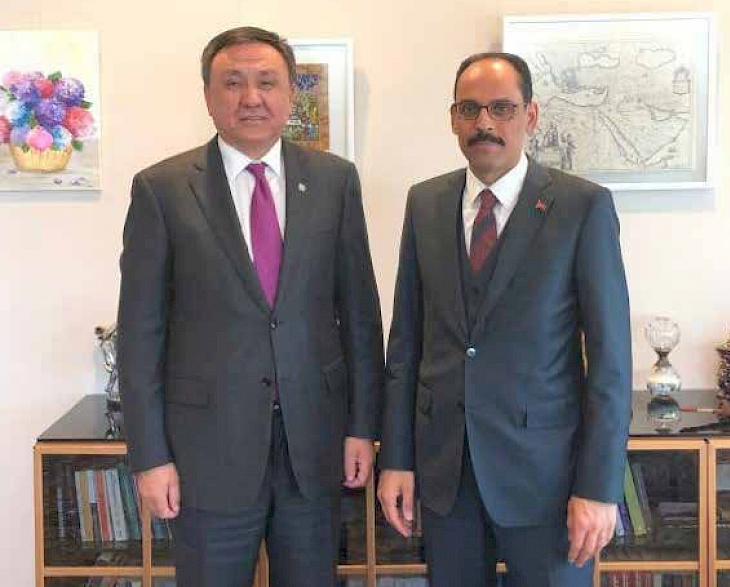 Кыргыз Республикасынын Түркия Респуликасындагы Атайын жана Ыйгарым Укуктуу элчиси Кубанычбек Өмүралиев Түркиянын президенттик аппаратынын жетекчисинин орун басары, басма сөз катчысы, Коопсуздук жана тышкы саясат комитетинин төрагасынын орун басары Ибрахим Калын менен жолугушту. Бул тууралуу КРнын Түркиядагы элчилигинин басма сөз кызматынан кабарлашты.