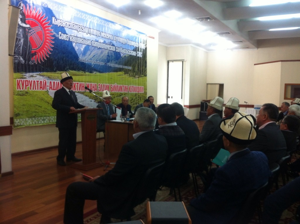 “Эл менен бийликтин ортосундагы ажырым өтө чоңоюп кетти. Эл өзүнчө, бийлик өзүнчө болуп калды. Бүгүн элибиз эч нерсеге ишенбеген абалга келдик. Бийликтин эл астындагы кадырынын кетишинин бир себеби мамлекеттик жетекчи кадырларды тандоодогу жоопкерсиздик болууда. Бир кездеги министрлер, мамлекеттик жооптуу кызматтагы жетекчилер менен бүгүнкү иштеп жаткан жетекчилерди салыштырып болобу? Мурда мамлекеттик кызматтарда иштебеген, кесиптик билими туура келбеген кадрлар көчөдөн келип эле жооптуу мамлекеттик кызматтарды, министрлик орундарды ээлеп отуруп калышууда. Ошого жараша иштин көзүн билип, туура иштеп кетсе кана. Тилекке каршы, иштеген иштеринен майнап чыкпай мамлекеттик ишти аксатышууда. Бүгүн мурунку постсоветтик мамлекеттердин ичинен эң начар чала сабат кадрлар Кыргызстандын мамчиновниктери болуп калды”- деп абалды өтө өкүнүү менен белгилеп келип, Элдик Курултайдын идеясын колдоорун айтып, өтүп жаткан Улуттук Курултайдын ишине ийгилик каалады.