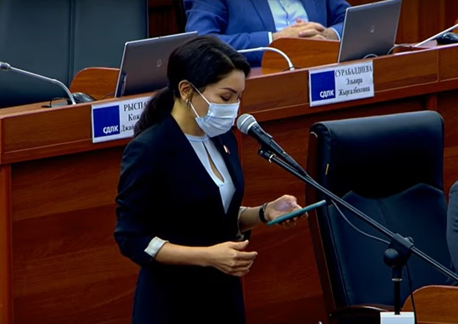 Депутат Элвира Сурабалдиева коронавирус менен күрөшүүгө салым кошуп жаткан медицина кызматкерлерине ыраазычылын билдирип, бирок, орто жолдо суроолор көп экенин айтты.