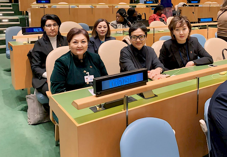 Аялдардын жана кыздардын укуктарын жана мүмкүнчүлүктөрүн кеңейтүү боюнча сунуштарды жана пикирлерди алмашууга Кыргызстандын БУУдагы Нью-Йорк шаарындагы туруктуу өкүлү Аида Касымалиева, акыйкатчы Жамиля Жаманбаева, финансы министринин орун басары Жибек Дүйшеева, Эмгек жана социалдык камсыздоо министрлигинин гендердик саясат жана үй-бүлөлүк зомбулуктан коргоо жана координациялоо бөлүмүнүн башчысы Гүлмира Окоева катышууда.