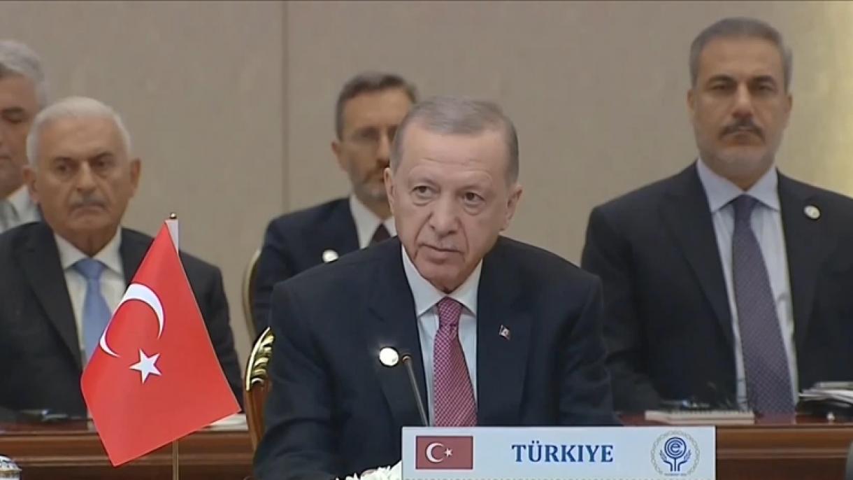 Президент Эрдоган Өзбекстандын борбор шаары Ташкентте өткөрүлгөн Экономикалык Кызматташтык Уюмдун 16 - Лидерлер саммитинде сүйлөгөн сөзүндө, Израилдин 7-октябрдан бери Газа тилкесине жасаган кол салууларына токтолду.