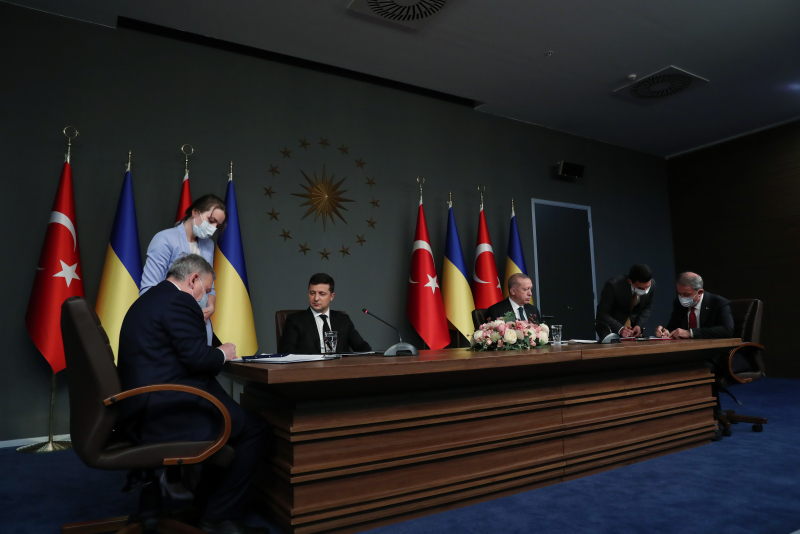 Түркия Украинаны аймактагы туруктуулукту, тынчтыкты, коопсуздукту жана гүлдөп-өнүгүүнү камсыз кылуу жагынан негизги өлкө деп эсептээри белгиленди. Президент Эрдоган Владимир Зеленскийдин Түркияга сапарынан кийин бир катар маанилүү келишимдерге кол коюлгандыгын айтты. Анын айтымында, Түркия менен Украина эки өлкөнүн ортосундагы соода-экономикалык кызматташтыкты өнүктүрүү ниетин тастыкташты.Түркия менен Украинанын коргонуу өнөр жайы, саламаттыкты сактоо жана туризм сыяктуу көптөгөн тармактарда өз ара пайдалуу мамилелер аркылуу байланыштары чыңдалганы белгиленди.