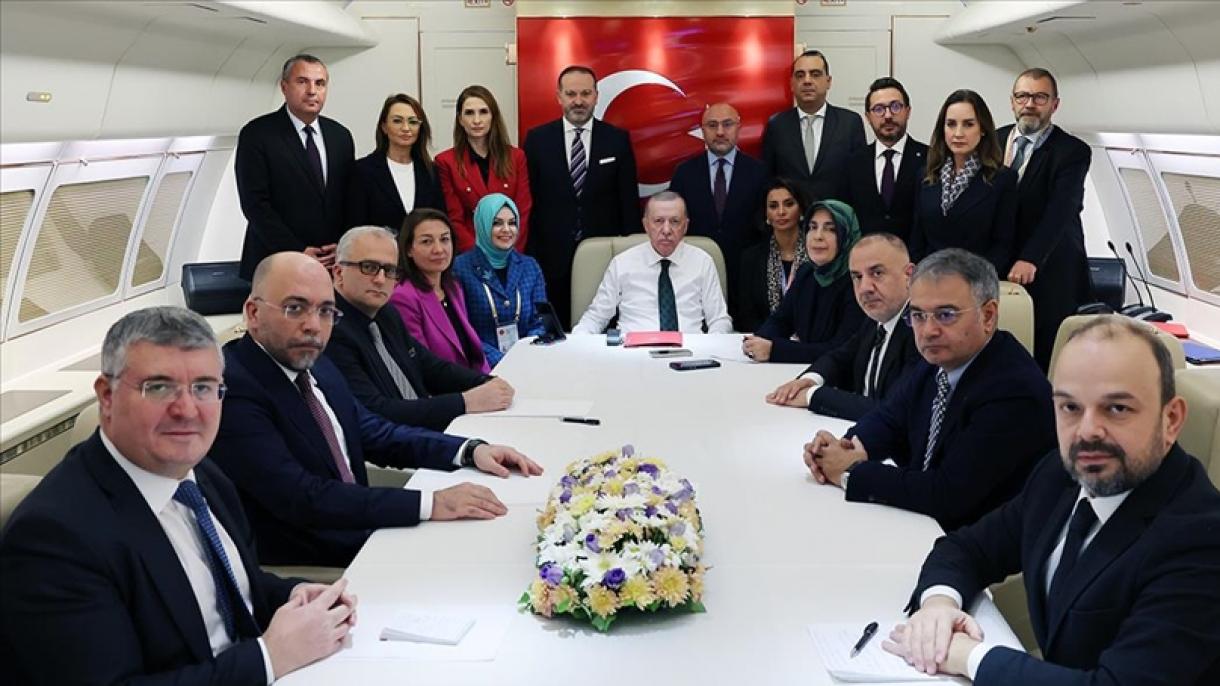 Президент Эрдоган БРИКС+ лидерлеринин кеңейтилген жыйынына катышуу үчүн барган Россияга Федерациясына караштуу Татарстан Республикасынын борбор шаары Казан шаарынан кайтып келе жатып учакта журналисттерге маалымат берди. Бул тууралуу трт.нет жазып чыкты.