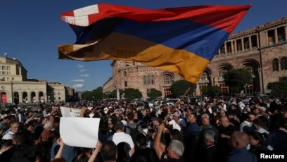 Армениянын өкмөт үйүнүн алдына чогулган жүздөгөн адам жикчил аймактагы окуя үчүн премьер-министр Никол Пашинянды күнөөлөп, андан батыл чараларды көрүүнү талап кылууда.
