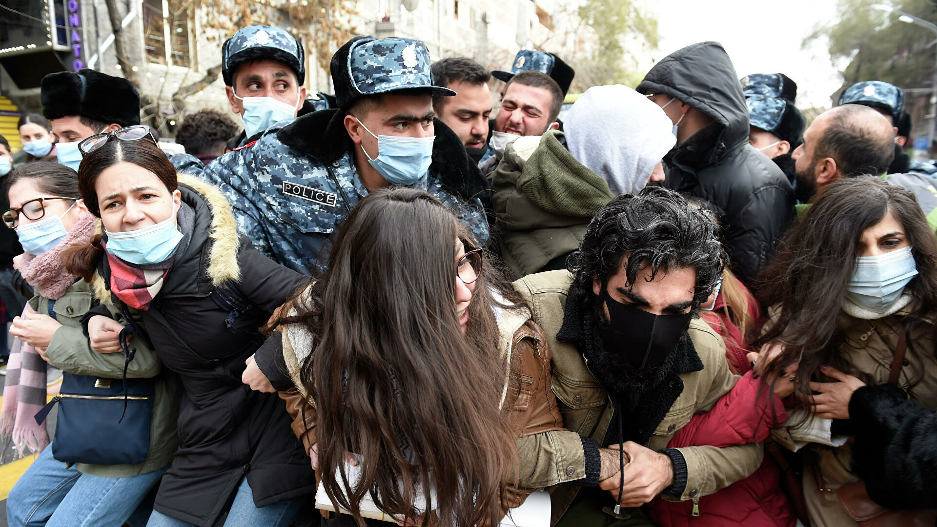 Бул арада ондогон адамдар Еревандын борборундагы Тиграна Меца көчөсүн торошту. Оппозициячыл «Дашнакцутюн» партиясынын акивисттери премьер Никол Пашиняндын отставкасын талап кылышты. Полиция аларды кууп таркатты. Андан бир саат өтпөй нааразы болгон топ Армения өкмөтүнүн имаратынын алдында армян желегин жаюуга аракет жасады.