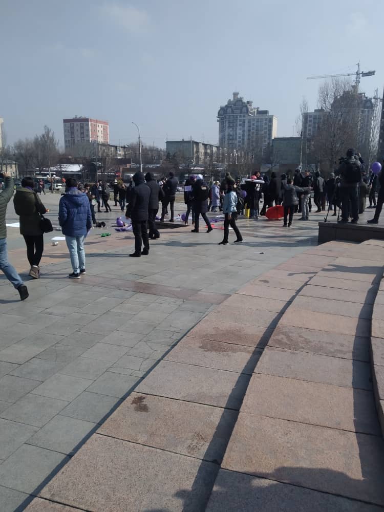 Райондук ички иштер бөлүмүнүн жетекчисинин орун басары Эрлан Атантаев «Аялдардын шериктештик маршында» кармалгандар алар уруксат берилбеген жерде митинг өткөрүшкөндүгү үчүн милиция тарабынан кармалагандыгын билдирген.