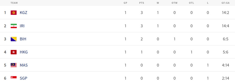 Оюн кечээ, 27-февралда өткөн. Анын жыйынтыгында кыргыз хоккейчилери Сингапурдун курама командасын 14:2 эсебинде утту.