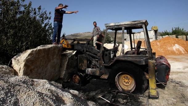Еврей отурукташуучулар Батыш Шераида палестиналыктарга таандык бир экскаваторду өрттөштү.