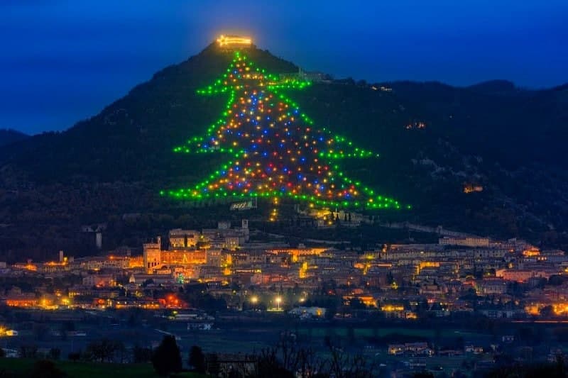 Италиянын Губбио коммунасында дүйнөдөгү эң чоң Жаңы жылдык балатынын оту жанды.