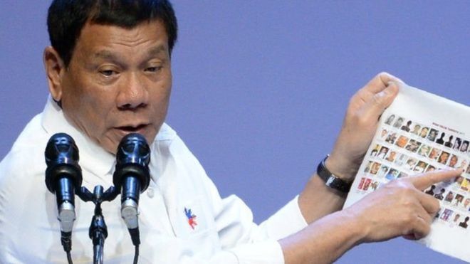 Родриго Дутерте Филиппиндин президенти кызматына 30-июнда киришкен. 71 жаштагы президент кылмыштуулук, өлкөдөгү баңгизат бизнесин жок кылуу жана коррупция менен «кандуу күрөштү» убада кылып бийликке келди. 16-декабрда Би-Би-Сиге берген интервьюсунда, Даваонун мэри болуп турганда кылмышка шектүү үч кишини өз колу менен атып салганын айткан.