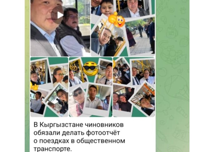 Ал кыргыз аткаминерлери коомдук транспорттон селфи жасап, калаа башчысына фотоотчет жөнөтөрүн белгилейт.