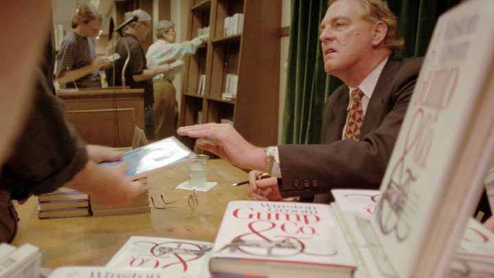 "Форрест Гамп" романы 1986-жылы жазылган. Ага тасма тартылгандан кийин алты ирет "Оскар" алган. Китепте акыл-эсинен артта калган адамдын өзүнүн жашоосу тууралуу айтып бергени жазылган. 1995-жылы Грум "Гамп жана компания" деген китептин уландысын жазган. Бирок ага дагы тасма тартуу аракетинен майнап чыккан эмес. Грум Форрест Гамп жөнүндөгү романдарынан сырткары, нон-фикшн жанрындагы бир нече чыгармаларын жазган.