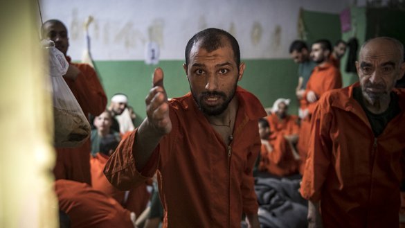 Төмөндө Сириянын түштүк-чыгышындагы Эль-Хасака шаарындагы абакта кармалган согушкерлердин сүрөтү.