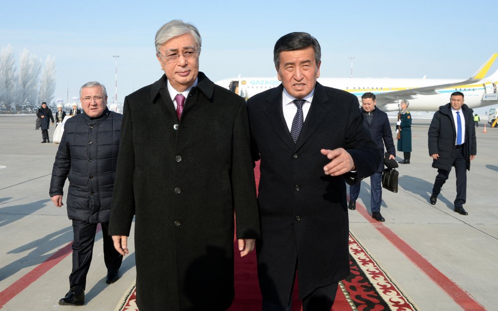 «Манас» эл аралык аэропортунда Казакстандын президентин Кыргыз Республикасынын президенти Сооронбай Жээнбеков тосуп алды.