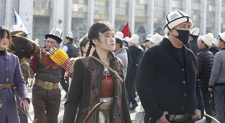 Бүгүн, 4-мартта Бишкекте Ак калпак күнүнө карата улуттук кийимдердин парады өттү.