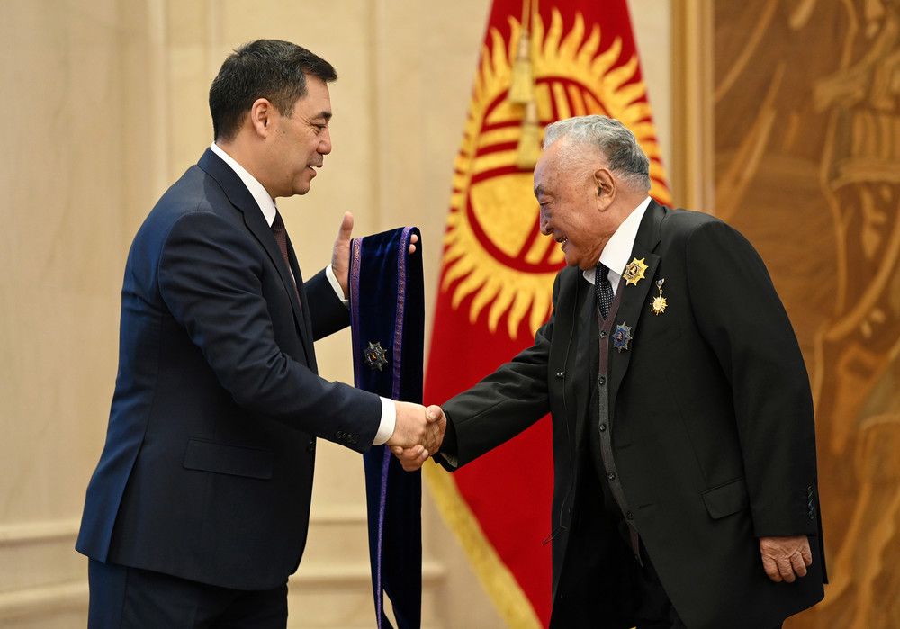 Президент Садыр Жапаров бүгүн, 2-апрелде ишмердүүлүгү менен өзгөчөлөнгөн жарандарга мамлекеттик сыйлыктарды тапшырды.