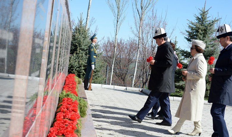 Мамлекет башчысы «Ата-Бейит» мемориалдык комплексинде 2010-жылы Апрель окуяларында курман болгондорду эскерүү монументине гүл койду. Чогулгандар бир мүнөт үн катпай турушуп, курман болгондордун элесине арналып куран окулду.