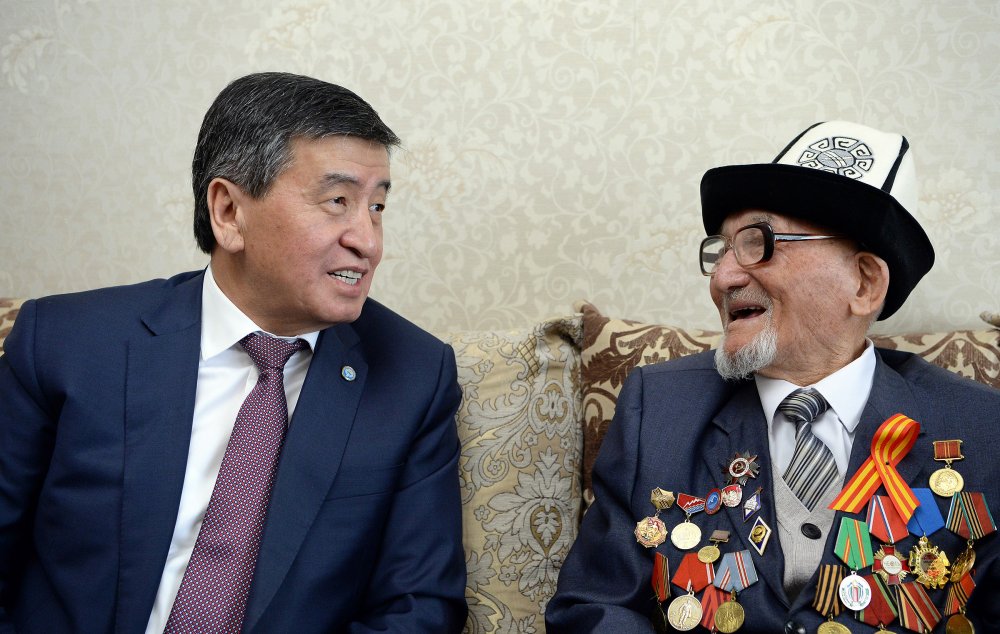 Кыргыз Республикасынын Президенти Сооронбай Жээнбеков бүгүн, 8-майда, Жеңиш күнүнө утурлай Улуу Ата Мекендик согуштун ардагерлери Усубакун Байсаловго жана Алексей Варавинге барды.