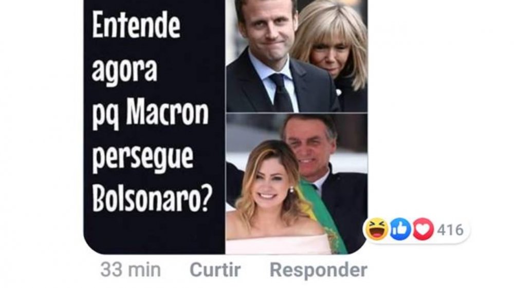 Анда Болсонарунун расмий баракчасына катталган адам Франция жана Бразилия президенттери жубайлары менен түшкөн сүрөттү жайгаштырып, алдына, “Макрон, Болсонаруну эмнеге аңдыганы эми белгилүү болду. Президент, Макрон сизге жөн эле ичи күйөт!” – деп жазган. Болсонарунун расмий баракчасы болсо бул посттун астына “жигитти капа кылба, ха... ха..” – деп комментарий калтырган. Мындай орунсуз комментарийди Болсонару же анын жардамчылары жазганы белгисиз. Бразилия президентинин басма сөз кызматы буга жооп берүүдөн баш тарткан.