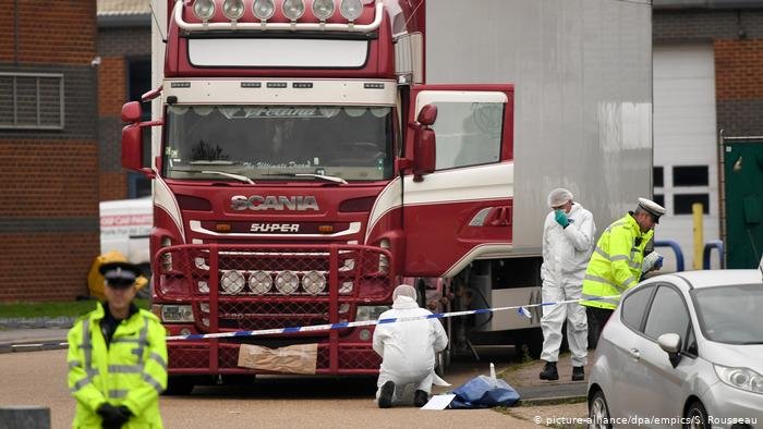 Белгилей кетсек, 23-октябрга караган түнү Англиянын Эссекс графтыгында, Лондондон 30 чакырым алыс жердеги Грейс шаарынын өнөр жай аймагында токтоп турган оор машиненин ичинен 39 адамдын денеси табылган. Анын 31и эркек (ичинде бир өспүрүм да бар), 8и аял. Англия полициясы 39 сөөктүн тек жайы аныкталганын, алар кытайлыктар экенин билдирген.
