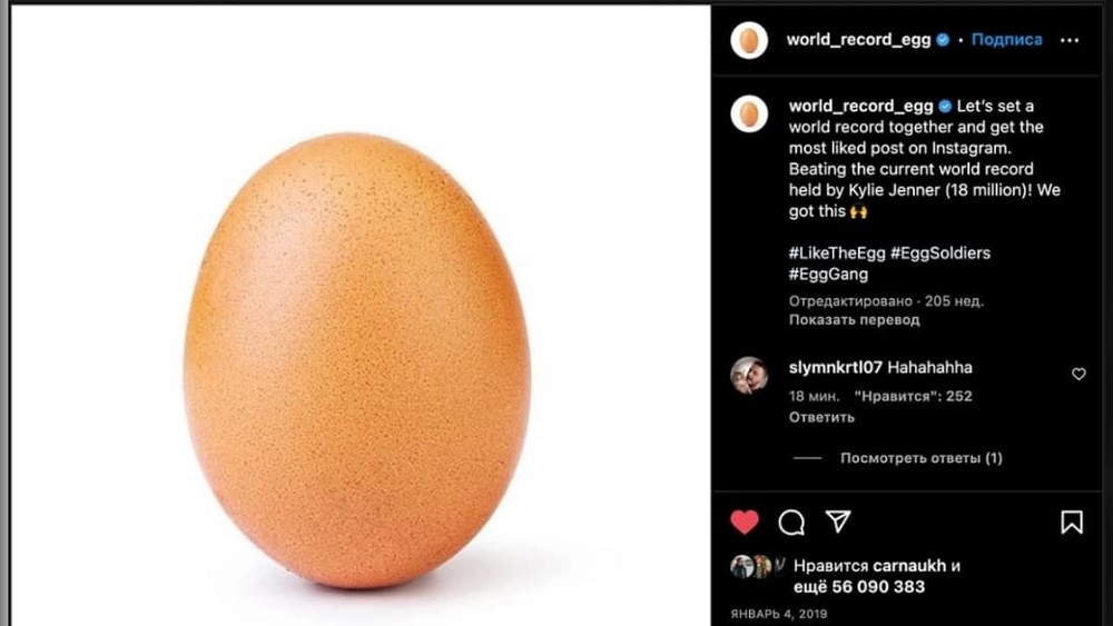 Буга чейинки рекорд World Record Egg баракчасындагы тооктун жумурткасынын сүрөтүнө таандык болчу. Бул сүрөт 2019-жылдын январында жарыяланган. Андагы «жакты» белгиси менен жаңы рекорддогу айырма — 300 миң.