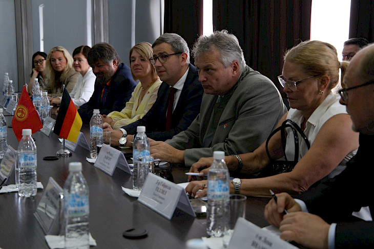Эмгек, социалдык камсыздоо жана миграция министри Кудайберген Базарбаев Бавариянын экономика, жерди өнүктүрүү жана энергетика мамлекеттик министрлигинин статс-катчысы Роланд Вайгерт башында турган бавариялык ишкер чөйрөлөрдүн делегациясы менен ишке орноштуруу чөйрөсүндөгү кызматташтык маселелерин талкуулады.
