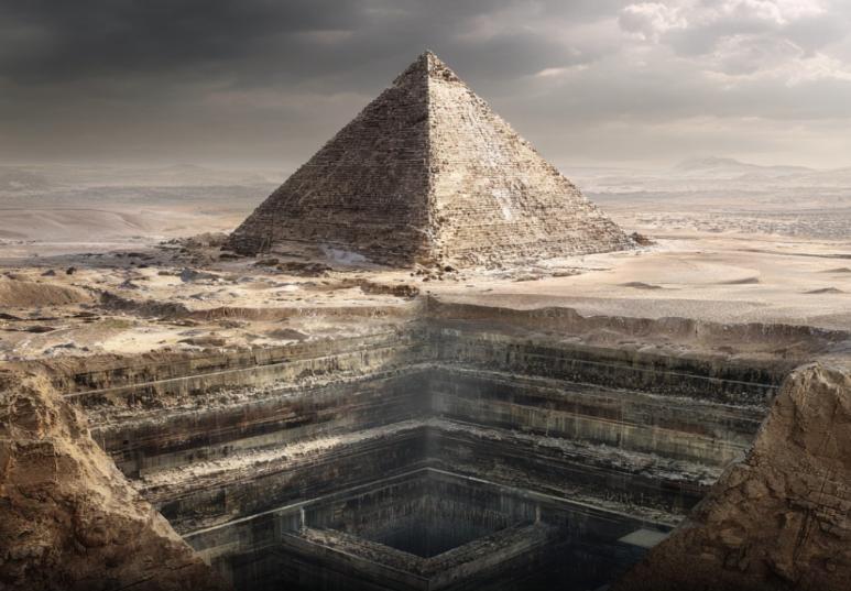 Дегенибиз, айрым маалыматтарга караганда, Гиза пирамидаларынын астында тереңде «Чексиз сактагыч» (Abyssal Vault) деп аталган чоң жертөлөө комплекси жайгашкан. Дээрлик доистордук доорго (тарыхка чейинки мезгил, же жазма эмес, оозеки салт, символдор, белгилер аркылуу жеткен маалыматтар) таандык деп эсептелген тексттерде бул жай жөнүндө “цилиндрге окшош узун камералар жердин 600 метрге жакын тереңдигине созулуп, өзгөчө вибрацияларды түзөт, алар адам кулагына угулбайт” деп айтылат.