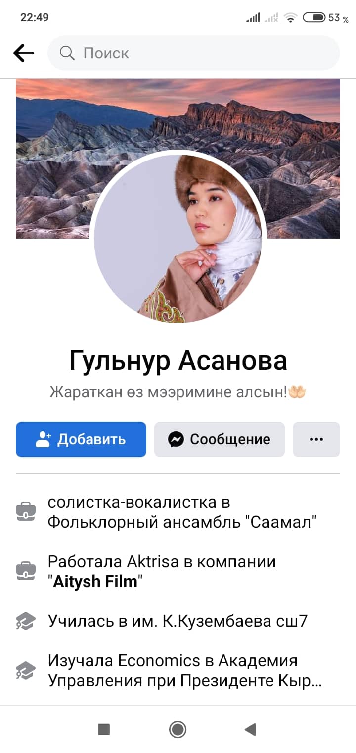 Постко тиркелген «Теңирчиликте аял менен аял, эркек менен эркек үйлөнсө болот» деген мазмундагы скриншоттогу фейк маалымат көрсөтүп тургандай, менин профилим менен чагым жасоону абдан каалашкан.