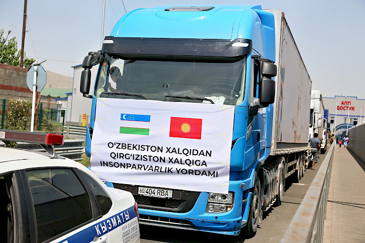 Гумантирдык жардамды Андижан облусунун губернатору Шоятбек Абдрахманов алып келип, аны “Достук” чек ара бекетинен Ош шаарынын мэри Бакытбек Жетигенов, КР Президентинин Ош облусундагы ыйгарым укуктуу өкүлү Элчибек Жантаев, Тышкы иштер министрлигинин жана Өзбекстандын Ош шаарындагы Башкы консулдугунун өкүлдөрү тосуп алышты.