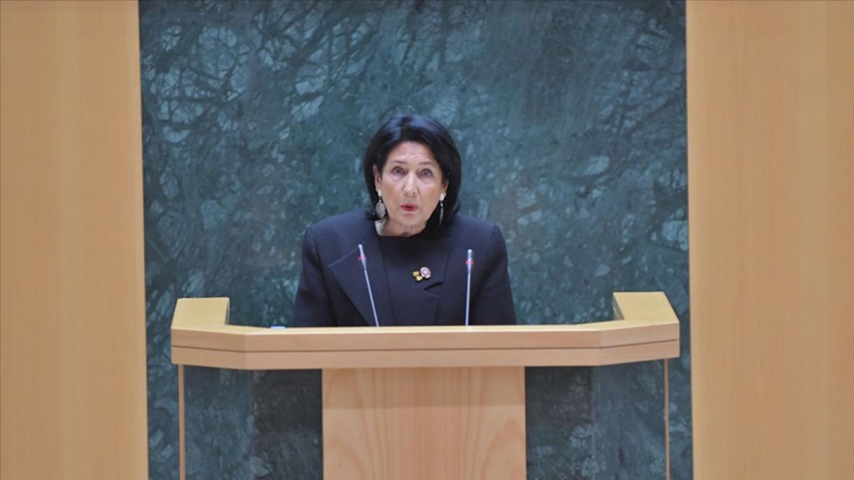 Ал, борбор шаар Тбилисидеги президенттик сарайда билдирүү жасап, 5 пайыздык босогодон өткөн оппозициялык «Грузияны сактап калуу үчүн биримдиги», «Өзгөртүү үчүн коалиция» жана «Күчтүү Грузия» шайлоо блогунун лидерлери колдогон Зурабишвили өз өлкөсүндө өткөн парламенттик шайлоого баа берди.
