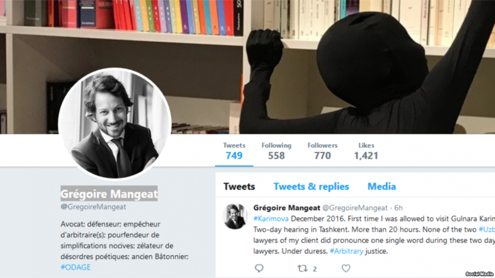 «2016-жылы декабрда алгачкы жолу Гүлнара Каримова менен жолугууга уруксат беришкен. Ташкенттеги эки күндүк угуулар маалында Каримова тарабынан дайындалган өзбекстандык адвокаттар бир дагы жолу ооз ачышкан жок. Басым алдындагы үндөбөгөн адвокаттар. #Адилетсиз адилеттүүлүк», – деп жазды швейцариялык адвокат.