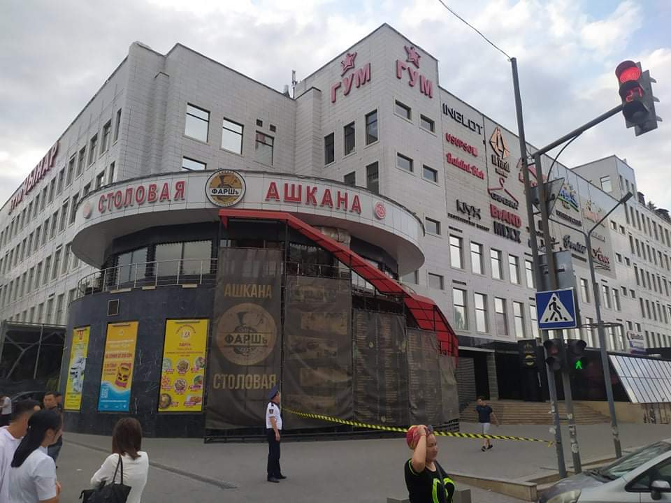 Бишкектеги «ГУМ» соода борборунда шек жараткан буюм табылып, ал жактагы жарандар сыртка чыгарылып жатат.