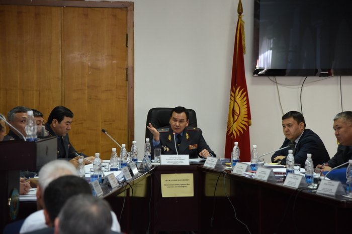 Жыйындын негизги темасы Кыргыз Республикасынын Ички иштер органдарынын 2018-жылдын 9 айынын ыкчам-кызматтык ишмердүүлүгүнүн жыйынтыктары тууралуу маселелер каралды. Андан сырткары ички иштер органдарында өндүрүштөн убактылуу токтотулган кылмыш иштеринин жана ыкчам кызматтарындагы издөө иштеринин абалы жана ал иштерди инвентаризациялоонун жыйынтыгы ошондой эле 2019-жылы күчүнө кирип, ишмердигин жүргүзө турган жаңы мыйзамдарга ички иштер органдарынын даярдыгы жөнүндөгү маселелер талкууланды. Коллегияда ички иштер министринин биринчи орун басары, милициянын генерал-майору Сүйүн Өмүрзаков 2018-жылдын 9 айынын ичинде уюштуруучулук жана ыкчам-кызматтык ишмердүүлүгүнүн жыйынтыктары, ички иштер органдарындагы бардык көйгөйлөрдү ачык айтып, калыс чындыкты ортого салып, кемчиликтерге акыйкат баа берип, таразага салып калыс чечимдерди чогуу кабыл ала тургандыгын баса белгиледи.