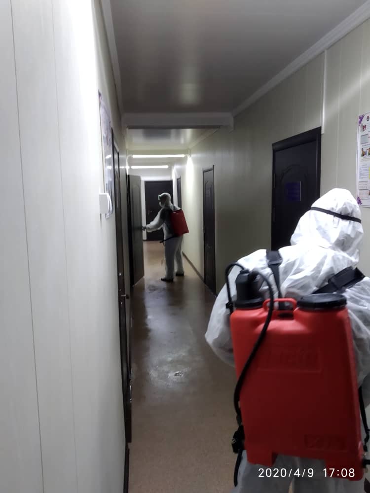 Кыргыз Республикасынын ИИМдин Мамлекеттик күзөт кызматы башкы башкармалыгынын Биринчи май райондук күзөт бөлүмү туруктуу негизде коронавирустук илдетин алдын алуу жана жайылышына бөгөт коюу максатында административдик имараттын бөлмөлөрүн, сырткы аймагын, кызматтык автоунаа каражаттарын дезинфекциялоо жүрүзүүдө. Бул тууралуу ИИМдин МАККББнын басма сөз кызматы билдирди.