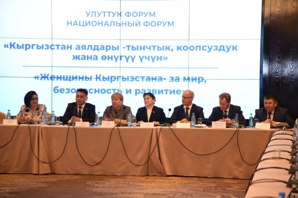 Бүгүн, 2019-жылдын 4-март күнү Бишкекте “Хаят” отелинда “Кыргызстандын аялдары: тынчтык, коопсуздук жана өнүгүү үчүн” улуттук форуму болуп өттү. Форумдун уюштуруучулары- Республикалык Аялдар Кеңеши, Коопсуздук, коомдук тартип жана мыйзамдуулук секторундагы кыргыз аялдарынын Ассоциациясы, Аялдар форуму, Солдаттардын энелери республикалык комитети.
