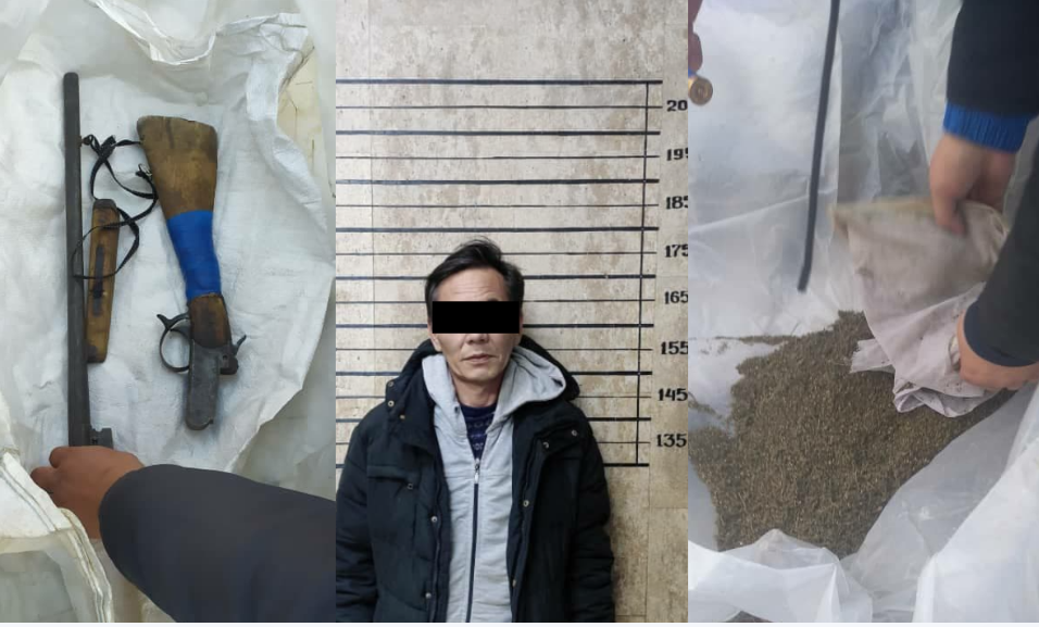 Аталган иш-чараны жүргүзүү алкагындагы атайын тергөө амалдарынын натыйжасында шектүүнүн үйүнөн кара-жашыл түстөгү кендир жыттанган, капка салынган зат табылып алынган. Мындан тышкары, тинтүү учурунда мыйзамсыз курал-жарактарды сактап жүрүү фактысы аныкталып, уруксат берүүчү документтери жок эки бирдик 16-калибриндеги сайсыз куралдар табылып алынган.
