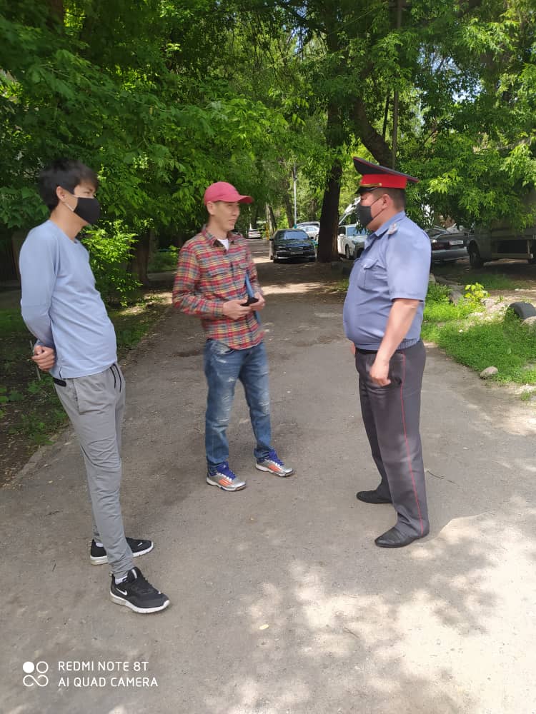 Күн сайын Бишкек шаарында жайгашкан коомдук жайларда патрулда жүрүп, шаар тургундарына чектөө чараларын сактоо керектигин эскертип, мүмкүн болушунча жашаган жеринен чыкпоого үгүттөп, зарыл муктаждык жаралганда гана жеке коргонуу каражаттарын колдонуп, социалдык аралыкты сактоо менен көчөгө чыгуусун суранып келишүүдө.