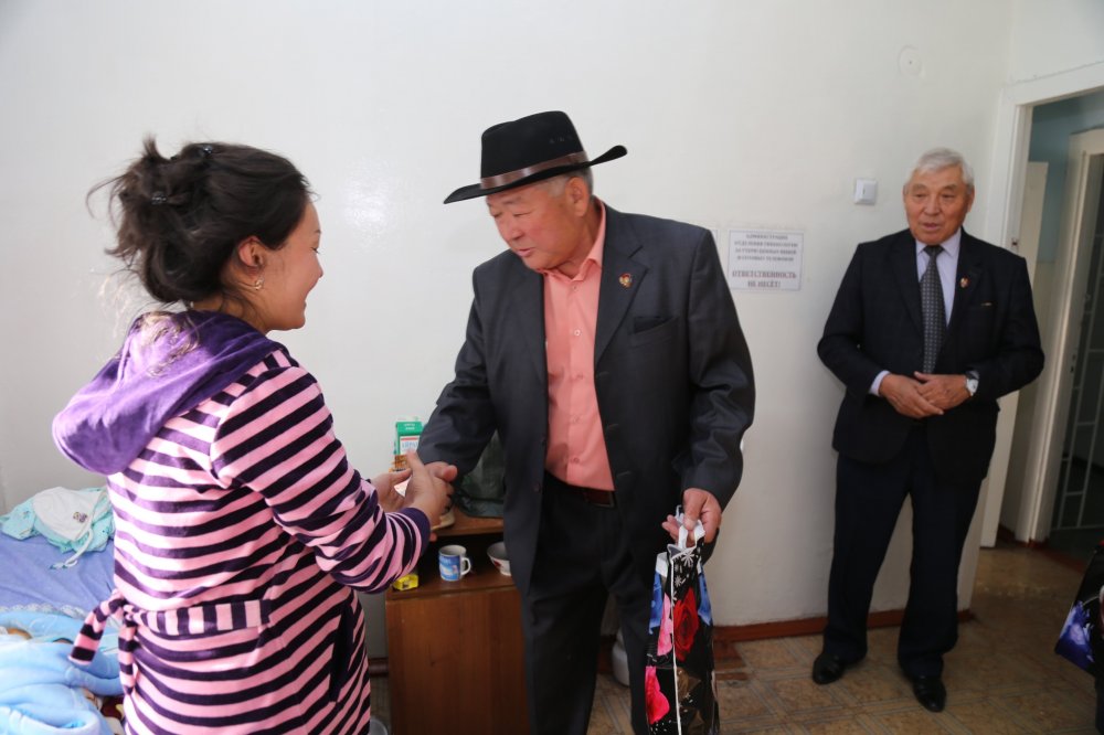 Күтүлбөгөн жерден белек алып жаткан энелер кубанышып, жаңы төрөлгөн ымыркайлар аксакалдардын белеги менен бирге ак баталарын алып жатышканын кубануу менен кабыл алышты.