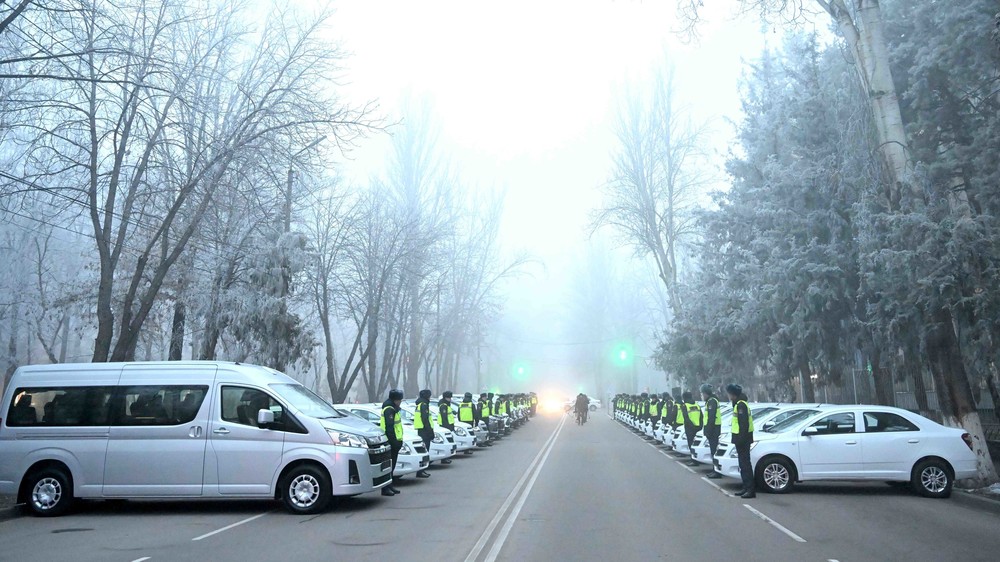 Министрлер кабинетинин төрагасы Акылбек Жапаров Ички иштер министрлигине автоунаа берүү аземине катышты.