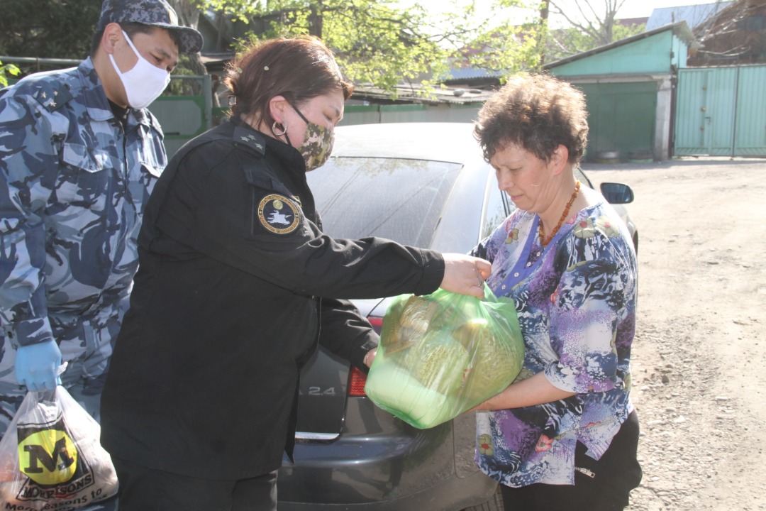 "2020-жылдын 22-апрель күнү ИИМдин Коомдук коопсуздук кызматынын бөлүм башчысы милициянын полковниги Нуржан Адылова, өздүк курамы менен Бишкек шаарындагы оор турмуштук абалга туш болгон үй-бүлөлөргө жана мүмкүнчүлүгү чектелген жарандарга азык-түлүк пакеттерин таратышты.